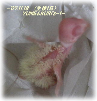 ゆめくんと久里ちゃの雛が昨日朝生まれました。