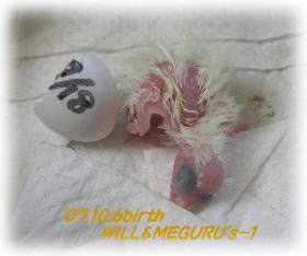 今朝ウィルとめぐのペアに初卵が生まれました。