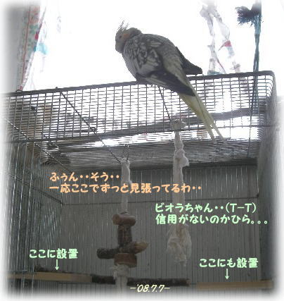 ・・・・・設置中見張り続けるビオラ・・・ ^-^;