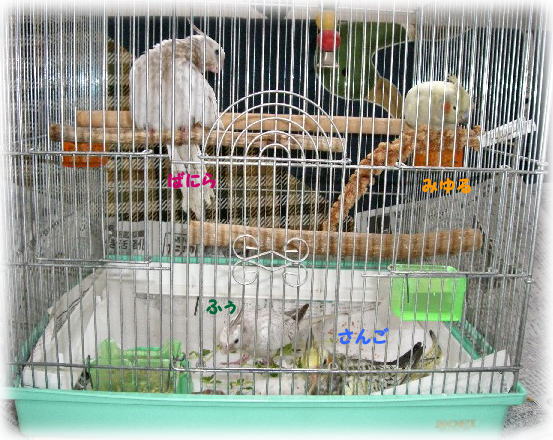 ケージにごはんを入れたら今ぷちぷち食べてます。
