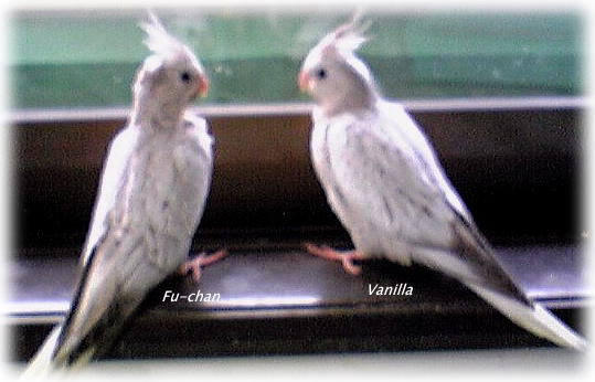 向かって左手がふぅちゃん(ふたご・仮名)、右がバニラちゃんです。