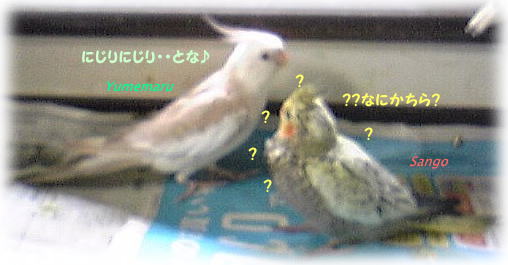 仮名・さんごちゃんは3羽の中で1ばんおとなしい子です。
