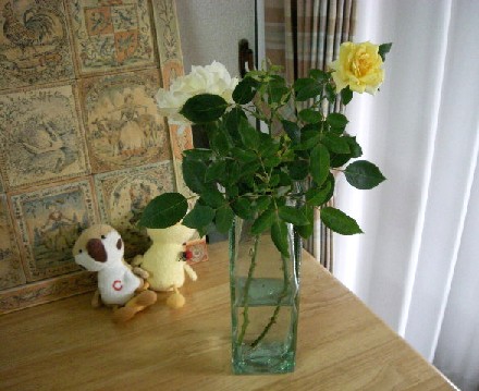 庭に出て咲いてたバラを活けました。