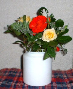 うちでは庭に咲いたミニバラを室内に活けてみました。