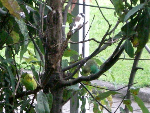 木の上方、違う種類の鳥さんもいるのおわかりになるでしょうか。
